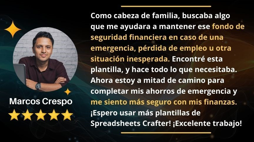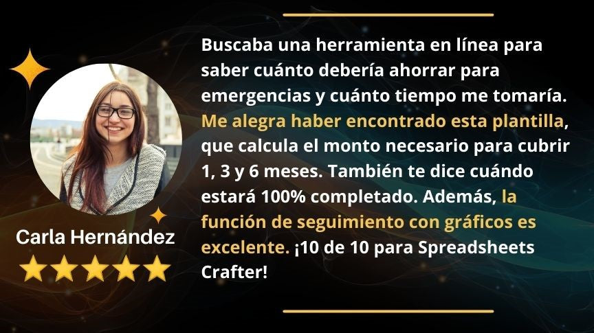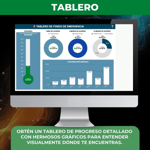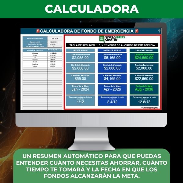 Esta calculadora y rastreador de fondos de emergencia es la herramienta perfecta para eso. Puedes calcular cuánto debería ser tu fondo de emergencia, cuánto tiempo tomará alcanzar tu meta de ahorro y seguir tu progreso hacia esa meta.