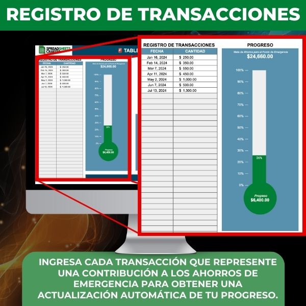 ✅ 3. COMIENZA A SEGUIR: ingresa todos los depósitos de ahorro en la tabla de registro de transacciones. Usa el tablero para entender visualmente tu progreso.