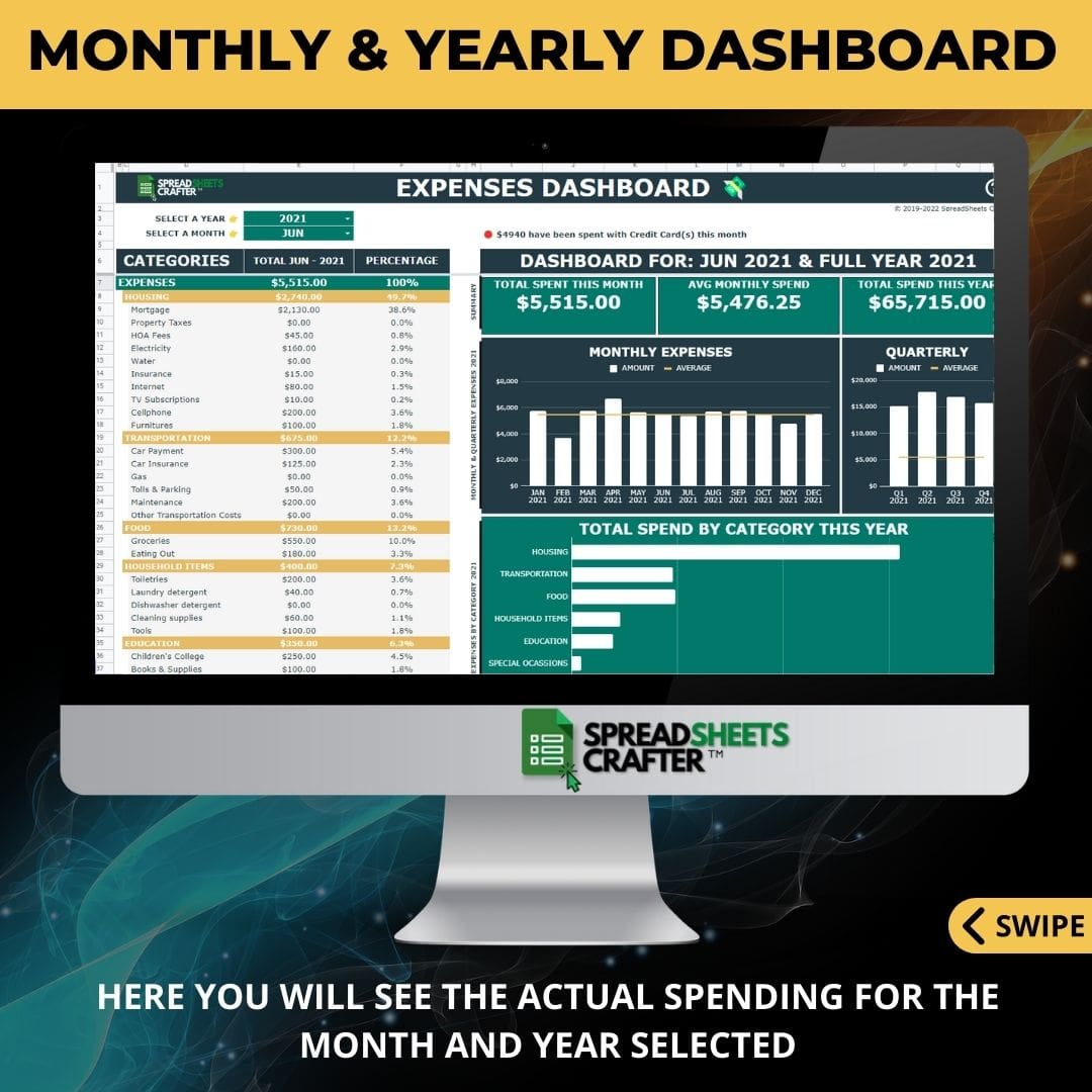 #1 Expense Tracker & Dashboard - Become Accountable of your Spending Habits with this Easy to use Spreadsheet