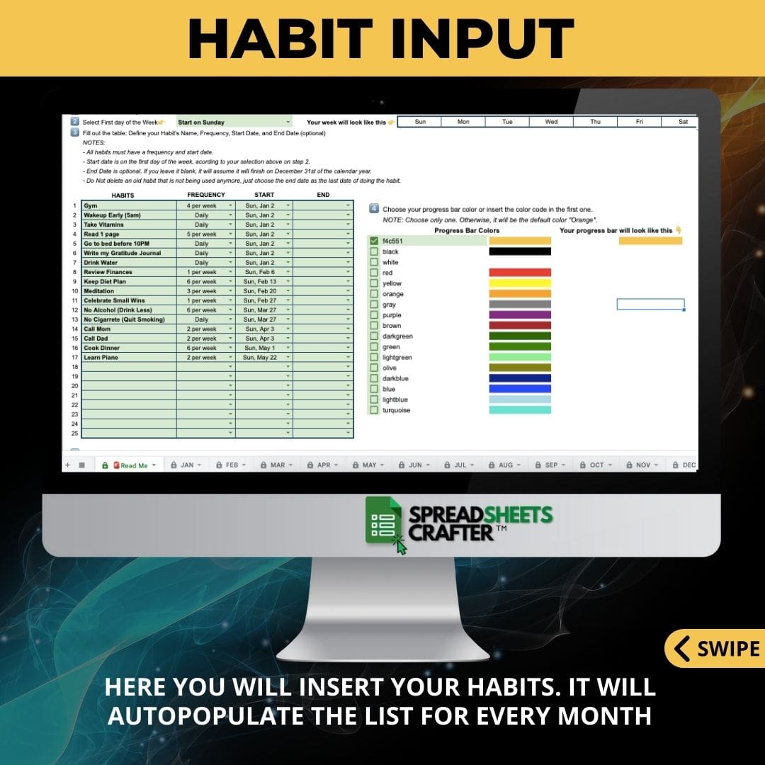 KEEP TRACK OF YOUR HABITS WITH THIS EASY TO USE SPREADSHEET